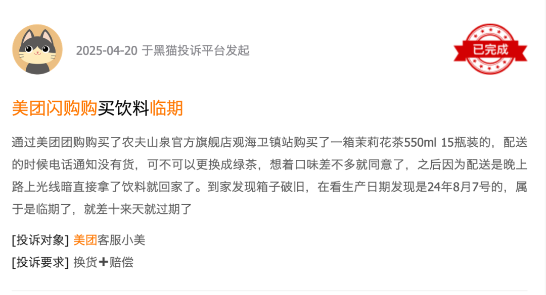 在商品质量上,美团闪购的隐忧更值得关注。与深入供应链的京东自营电商模式不同,美团闪购本质上是一种信息撮合模式,商品高度依赖第三方商家,这也就决定了其很难从根本上杜绝品质问题。翻开小红书、黑猫投诉 【下载黑猫投诉客户端】等平台,可以看到有不少消费者针对品质的投诉,如有消费者在黑猫投诉上表示,通过美团闪购买了一箱茉莉花茶,结果收到后发现箱子破旧,再看生产日期发现属于临期商品,再有十来天就过期了。即使是自营,美团也面临品控不严的问题,今年1月,美团自营的小象超市因为荔枝农药含量超标两倍,被相关部门立案调查。4月,小象超市又因土豆的毒死蜱超标被相关部门调查。